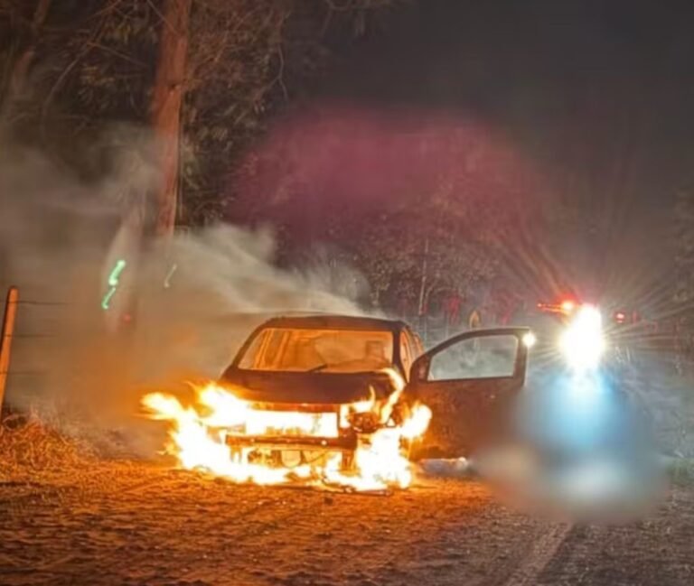 Um motorista de aplicativo de 46 anos foi morto a tiros e teve o corpo parcialmente queimado na estrada municipal Achiles Merlin, em Conchas