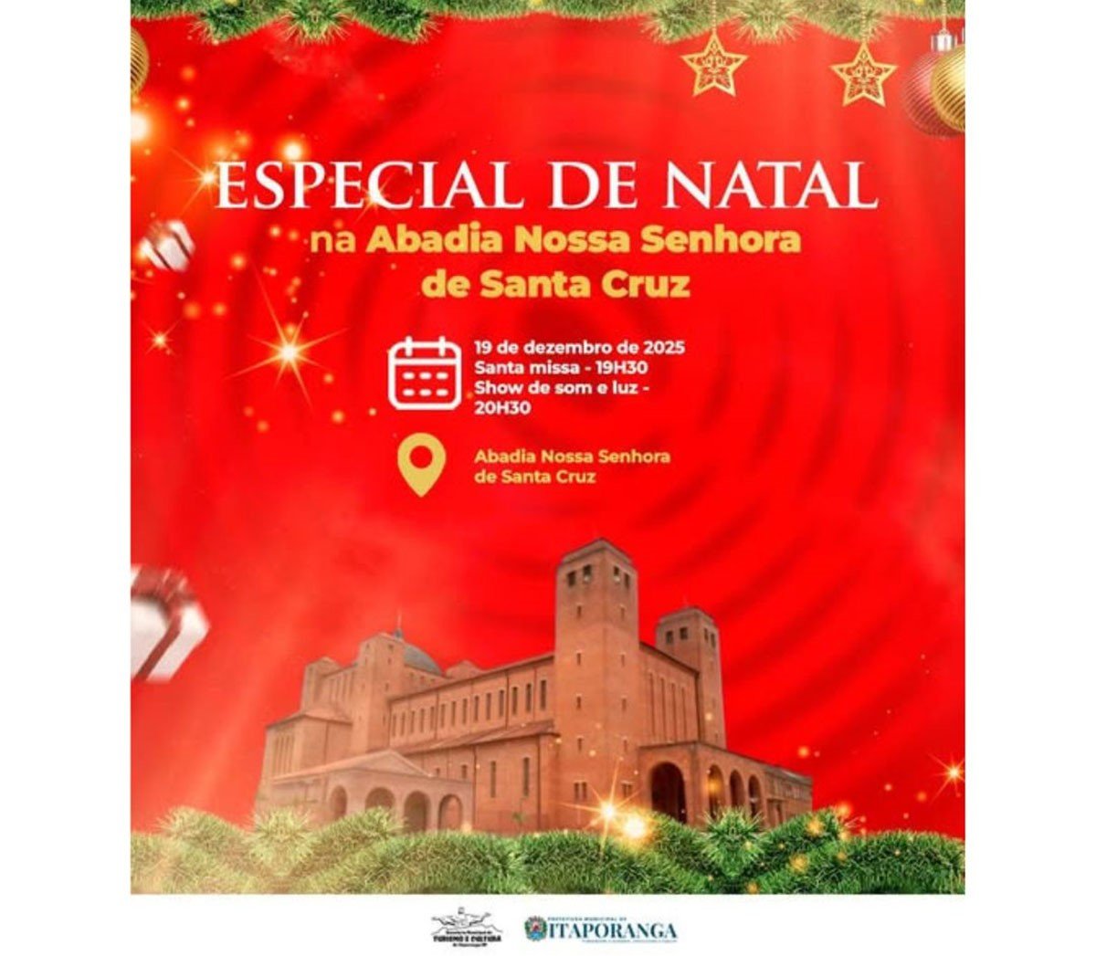 A Igreja Abacial de São João Batista, localizada no Mosteiro Nossa Senhora de Santa Cruz, dos monges da Ordem Cisterciense (O. Cist.), recebe uma programação especial de Natal nesta sexta-feira (19), em Itaporanga (SP).
