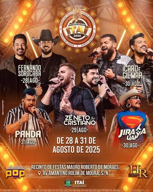 A partir desta quinta-feira, 28 de agosto, Itaí dá início à aguardada Festa do Peão 2025, que segue até domingo, dia 31, com quatro dias de grandes shows, competições na arena e uma estrutura preparada para receber milhares de pessoas da cidade e da região.