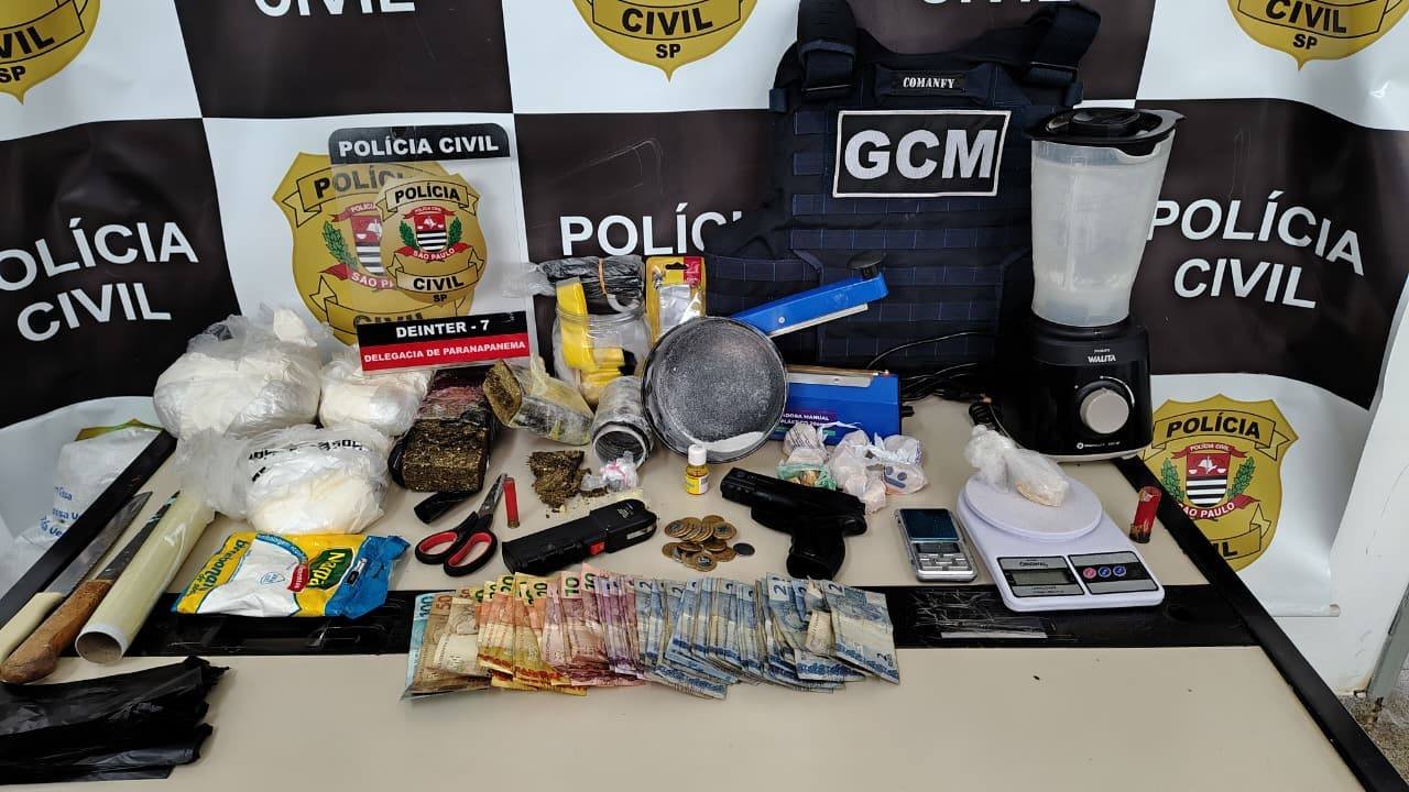 Uma operação integrada entre Polícia Civil, Polícia Militar e Guarda Civil Municipal de Paranapanema, realizada nos dias 6 e 7 de novembro, prendeu dois homens, de 23 e 30 anos, e apreendeu grande quantidade de drogas, dinheiro e materiais usados no tráfico.