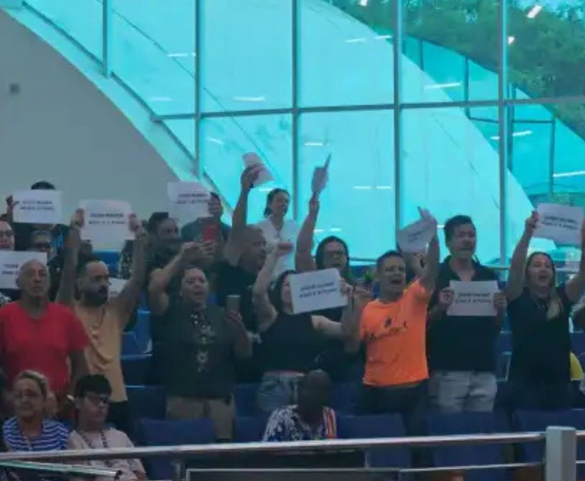 A aprovação do reajuste foi marcada pela confusão que resultou na retirada forçada do munícipe Vinicius Berna do plenário, após ele protestar contra o aumento.