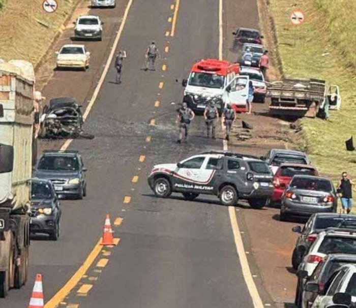 Motorista de carro morre em batida frontal na SP-249  com caminhão na Foto: Gabriel Gomes/Radar Regional/Divulgação
